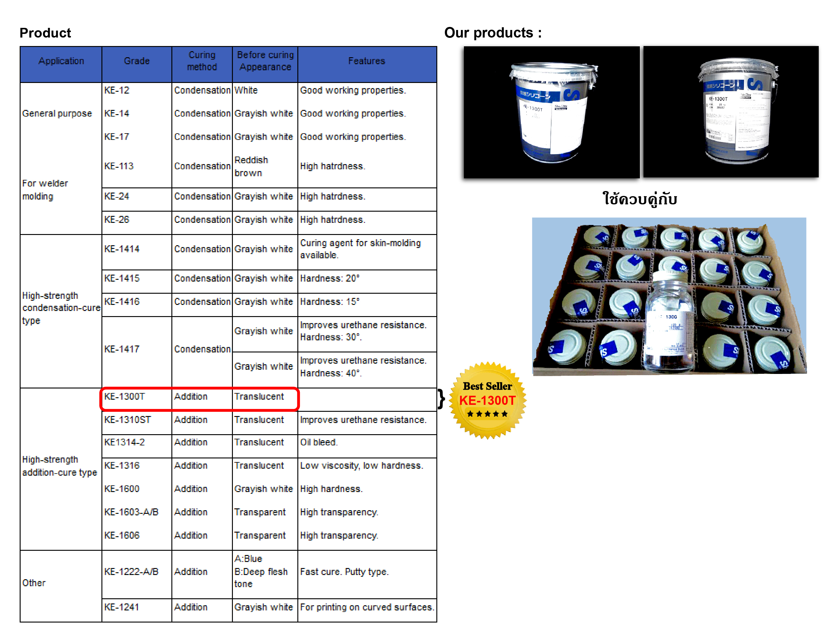 รหัสสินค้า | KE-1300t(5Kg./Pail) |